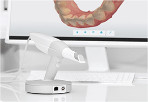 型取りの際にひんやりとした粘土のようなものをお口の中に入れられて不快感を覚えた、という経験をお持ちの方も少なくないかと思います。当グループでは口腔内スキャナーを導入しており、小型カメラでお口の中を撮影し、どのデータをもとにコンピュータを使用して立体画像を再現することで、患者様のご負担を軽減しております。